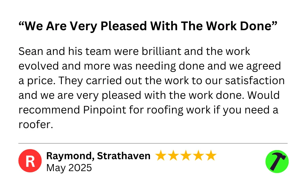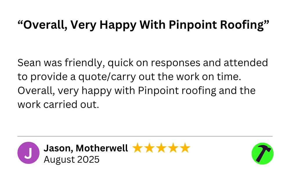 "Hi I'm Sean and I've been roofing in Glasgow with Pinpoint Contracts Ltd for nearly a decade. I started this business with one goal - to give homeowners a straight, honest service without the hard sell or hidden costs.